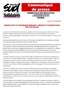 Les personnels de l’Éducation nationale sont appelés à rendre hommage avec les élèves à Dominique Bernard et Samuel Paty le mardi 14 octobre à l’occasion d’une minute de silence. Samuel Paty, professeur d’histoire-géographie, a été assassiné suite à un cours sur la liberté d’expression, utilisant des (...)